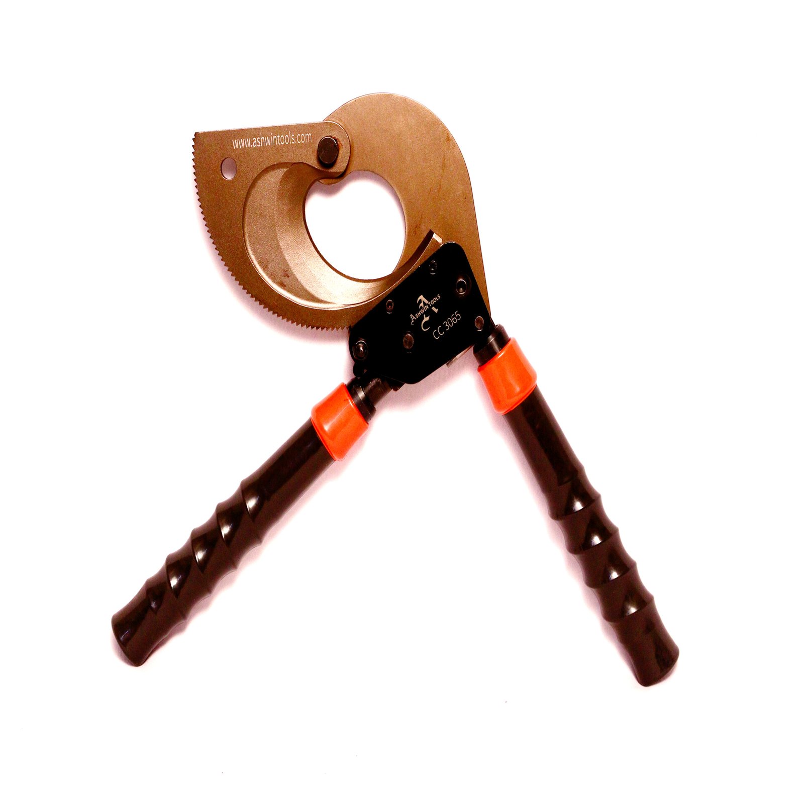 ASHWIN Manual cable cutter CC 3065 is a precision engineering marvel , made with rachet mechanism and durable Blades suitable for cutting Copper & aluminium cables upto 630 sq. mm with OD 65 mm .Â